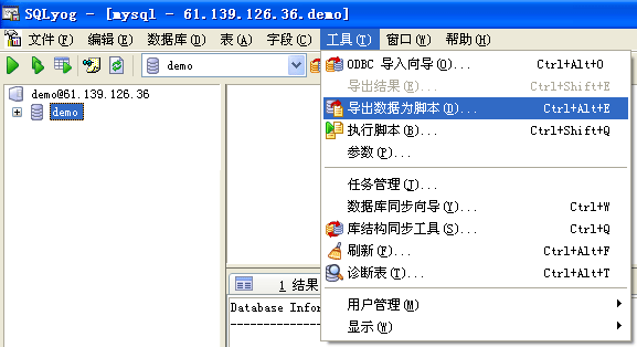 3.備份數(shù)據(jù)庫(kù):選擇工具菜單中的“導(dǎo)出數(shù)據(jù)為腳本”,