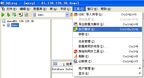 2.還原數(shù)據(jù)庫(kù): 選擇工具菜單中的“執(zhí)行腳本”。