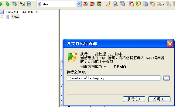 選擇您原來(lái)備份的Mysql數(shù)據(jù)庫(kù)的sql文件,然后點(diǎn)執(zhí)行,即可完成數(shù)據(jù)庫(kù)的導(dǎo)入恢復(fù)工作。