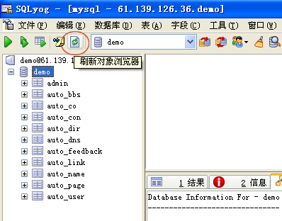 點(diǎn)擊如下圖所示的刷新按鈕,可以刷新數(shù)據(jù)庫(kù)信息。 |