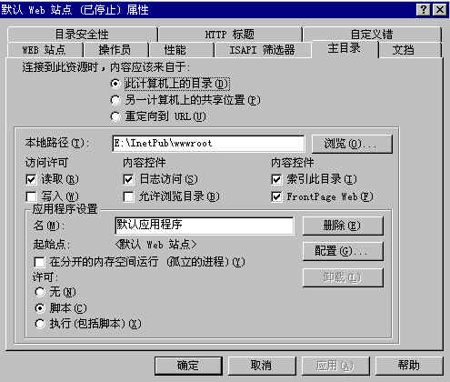 內(nèi)容控制--日志訪問將在日志文件中記錄對(duì)站點(diǎn)目錄的訪問;允許瀏覽目錄可以在當(dāng)客戶沒有指定具體的訪問頁(yè)面同時(shí)站點(diǎn)也沒有設(shè)定默認(rèn)頁(yè)面時(shí)自動(dòng)生成一個(gè)目錄內(nèi)容頁(yè)面;索引此目錄將指定目錄加入Web站點(diǎn)的全文索引(注:需安裝Microsoft