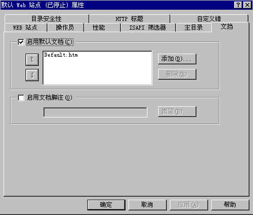 | 啟用默認(rèn)文檔: 設(shè)置當(dāng)訪問客戶沒有具體指定瀏覽頁(yè)面時(shí)顯示的默認(rèn)頁(yè)面。