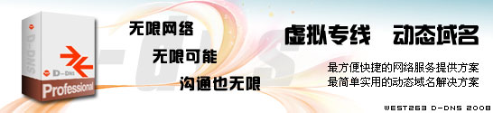良好的技術支持服務是這類產品在企業(yè)中應用的保證。為此,西部數碼為您提供了最佳的售前、售后服務和支持。無論在網絡設計、設備運行、設備提供、技術發(fā)展、咨詢、培訓、網絡管理、售后服務等方面,我們都有能力為您提供完善、優(yōu)質、及時的支援和服務。另外,動態(tài)域名D-dns還推出的寬帶網絡服務品牌——動態(tài)域名D-dns寬帶e聯,除了高品質地解決ADSL/寬帶網絡的動態(tài)IP域名解析問題外,還全面關注和提升企業(yè)在寬帶上進行信息化建設所需要的穩(wěn)定性和可靠性。動態(tài)域名D-dns專業(yè)的服務讓您更放心。