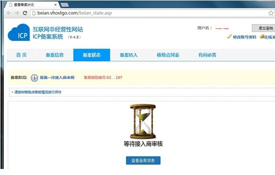 4.核驗(yàn)完成后,用戶只需注意查看備案平臺(tái)-備案狀態(tài)處提示等待審核,若狀態(tài)不正確請(qǐng)及時(shí)與接入商聯(lián)系,備案提交成功后工信部的官方回復(fù)是在20個(gè)工作日內(nèi)審核;如下圖: