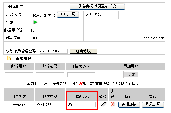 如何劃分每個郵箱空間大小?您只需要使用在我司的會員名與密碼登錄m.youyuetrip.com的管理中心,再點擊"企業(yè)郵局管理"-"管理": 添加郵箱用戶的時候,在"郵箱大小"中輸入每個郵箱的大小即可,單位是M