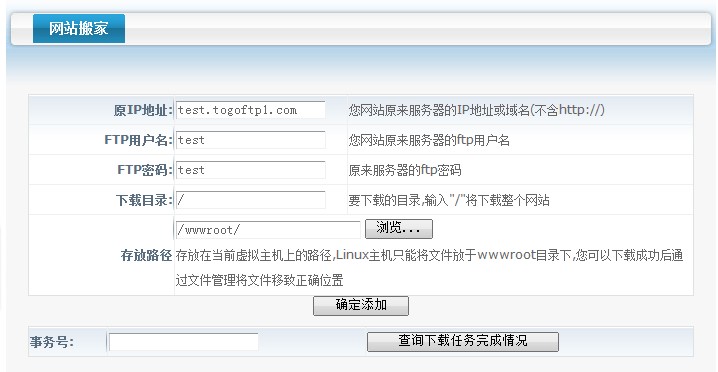 輸入舊虛擬主機(jī)的FTP地址,FTP賬號(hào)和密碼,系統(tǒng)將自動(dòng)把所有數(shù)據(jù)遷移到新的主機(jī)上,遷移后如果文件位置變了,請?jiān)谖募芾砘?/span>