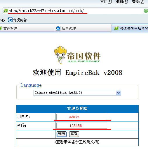 若原數(shù)據(jù)庫并不支持遠(yuǎn)程連接,則請將“帝國備份王”上傳到您原空間后再按下邊的提示操作,備份成功后您需要將