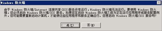 共享IP云主機(jī)安裝FTP服務(wù)器的方法1、登錄服務(wù)器,下載ftp服務(wù)器安裝程序http://downinfo.myhostadmin.net/ftpserver.rar,解壓后根據(jù)安裝說明文檔進(jìn)行安裝。 2、在服務(wù)器上右鍵點(diǎn)擊“網(wǎng)上鄰居”——“屬性”,打開網(wǎng)絡(luò)連接。右鍵點(diǎn)擊“本地連接”——“屬性”,然后點(diǎn)擊“高級(jí)”——“設(shè)置”,如果提示以下信息,說明防火墻未開啟,則可以點(diǎn)“否”取消: