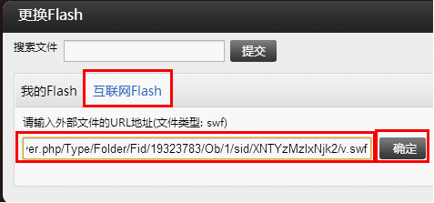 2)Flash URL地址添加法。這種添加法允許添加外部站點的Flash 的URL地址,