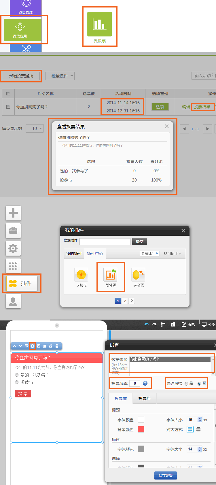 微信應(yīng)用-微投票微投目前只適用于微信建站(非手機(jī)站) 后臺(tái):可以添加多個(gè)投票活動(dòng),自由編輯投票選項(xiàng)內(nèi)容,控制投票開(kāi)始和結(jié)束時(shí)間,查看投票結(jié)果