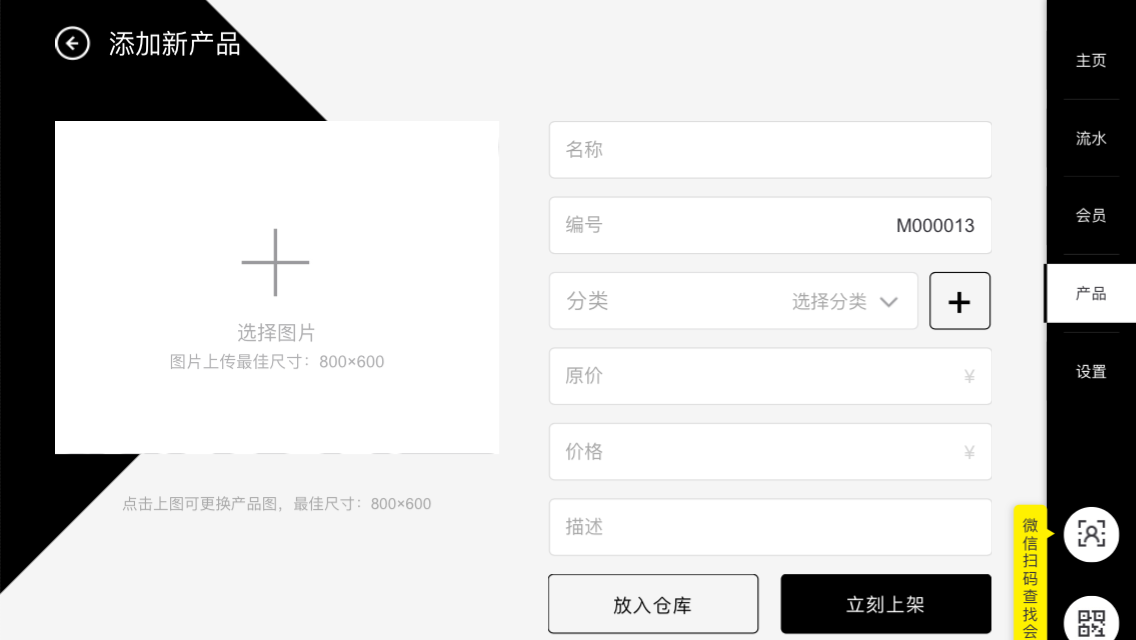 另當使用移動端設備添加產品時,圖片可以通過相機拍照獲得。