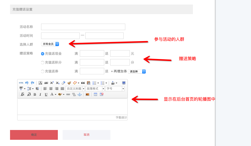 充值贈(zèng)送是指當(dāng)充值金額達(dá)到一定要求時(shí),將會(huì)獲得獎(jiǎng)勵(lì) 3、添加充值贈(zèng)送活動(dòng)
