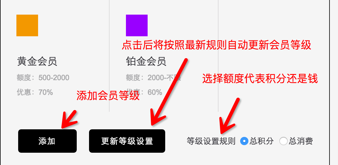 微小店會員相關(guān)成為會員的方式有通過掃碼可以獲取用戶信息的二維碼即可成為會員,還可以通過微信前端綁定手機成為會員。當(dāng)會員進行消費時會根據(jù)設(shè)置的會員等級的規(guī)則實時的對用戶的會員等級進行調(diào)整。