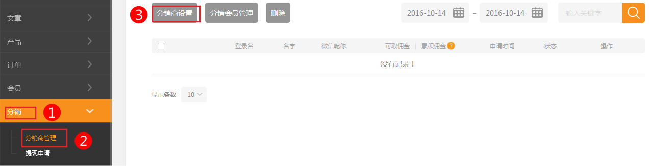 2、后臺(tái)依次點(diǎn)擊 分銷-》分銷商管理-》分銷商設(shè)置
