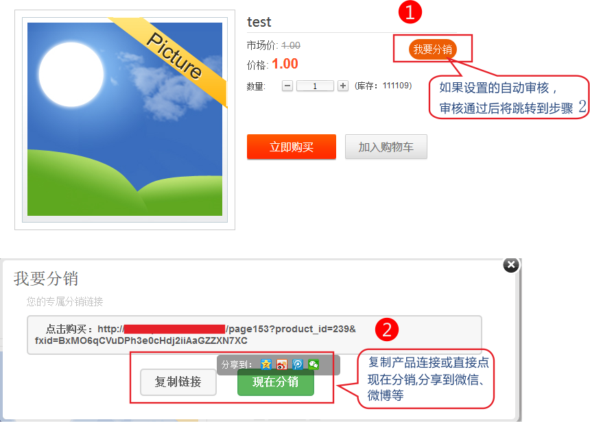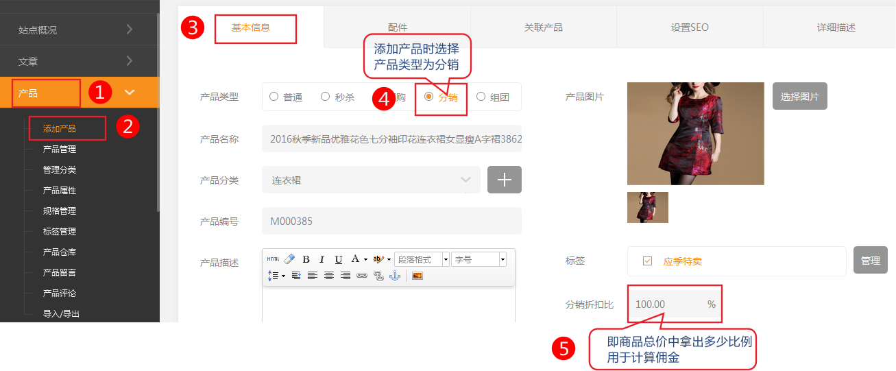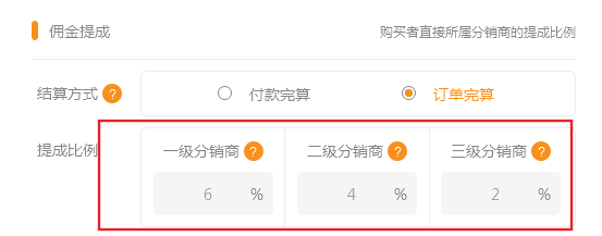 后臺(tái)添加產(chǎn)品中分銷折扣比例的作用是什么。 例原價(jià)是100元產(chǎn)品分銷折扣比例設(shè)置為50% 一級(jí)分銷獲取提成比例為6% 那么公式為 100* 0.5* 0.06=3元