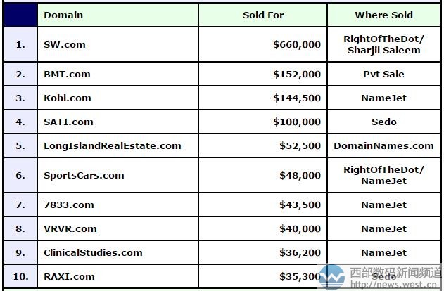 DN榜:極品域名sw.com以455萬元霸氣奪冠!多個短字符域名表現(xiàn)搶眼西部數(shù)碼(west.cn)5月11日消息,本期的DN交易榜(5.1-5.7)上,短字符域名表現(xiàn)搶眼,排名前10的域名中,7成域名皆是四字符以下的域名。其中,極品兩聲母域名sw.com以660,000美元的價格榮登榜首,約合人民幣455萬元。 域名sw.com注冊于1994年,距今已有23年歷史了。作為兩聲母域名,sw.com代表的含義非常豐富,有“商務(wù)、生物、上網(wǎng)、食物、絲襪”等含義,在英文里可以是“西南”(southwest)、視頻教程Solidworks等多個組合詞的縮寫,可以應(yīng)用的空間非常廣泛,市場價值也相當(dāng)不菲。據(jù)了解,域名sw.com是由知名經(jīng)紀(jì)人Sharjil Saleem中介交易的,三月份他還經(jīng)手了域名asset.com(資產(chǎn))。 排名第二的是三字母域名bmt.com,成交價為152,000美元,約合人民幣105萬元。這個域名由海外信托公司Bryn Mawr Trust收購,官網(wǎng)域名為bmtc.com。雖然目前bmt.com尚未啟用,但相比于bmtc.com,bmt.com更加簡潔易記,便于輸寫,而且與品牌形象、官網(wǎng)logo等更加契合。 緊隨其后的kohl.com,以144,500美元成交,約合人民幣99.5萬元。該域名注冊于1996年6月,距今已有21年歷史了,在英文里是人名“科爾”的意思。目前對應(yīng)有美國著名的專業(yè)百貨公司——科爾士百貨公司 (Kohl’s) ,官網(wǎng)域名為kohls.com。 同樣以六位數(shù)美元成交的還有cvcv型域名sati.com,成交價為100,000美元,約合人民幣70萬元。據(jù)悉,該域名此前由一家生活服務(wù)類軟件公司持有,三月底域名sati.com還可以訪問,不過目前由于交易已經(jīng)完成,網(wǎng)站也以關(guān)閉。另一枚cvcv型域名rati.com也以35,300美元的成交價躋身榜單前10。 除此以外,三個組合域名也頗具看點(diǎn),其中字符較長的longislandrealestate.com成交價為52,500美元,人民幣大概是36萬元。這個域名雖然較長,但“長島地產(chǎn)”的含義非常清晰,用來搭建地方性房地產(chǎn)平臺最合適不過的了。另外,sportscars.com(跑車)、clinicalstudies.com(臨床研究)均超3萬美元成交。 本文轉(zhuǎn)載自新聞資訊,原文鏈接:DN榜:極品域名sw.com以455萬元霸氣奪冠!多個短字符域名表現(xiàn)搶眼