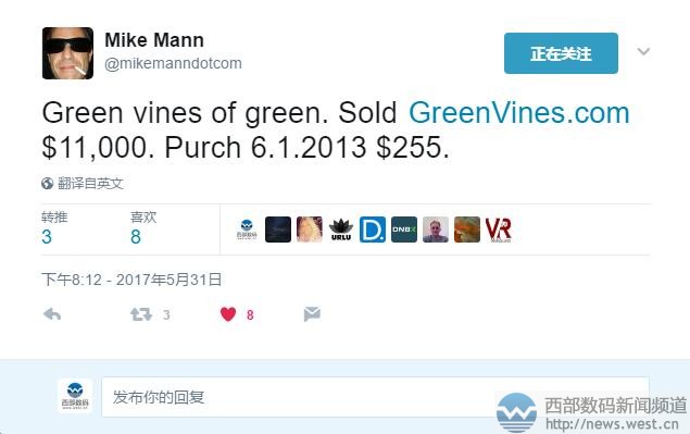 “餐巾紙”域名以13萬元結(jié)拍!“綠色藤蔓”賣出五位數(shù)美元西部數(shù)碼(west.cn)6月2日消息,小編在社交媒體上發(fā)現(xiàn),英文域名napkin.com和Greenvines.com分別以19,000美元和11,000美元成交了,后者乃是海外知名投資人Mike Mann所售。