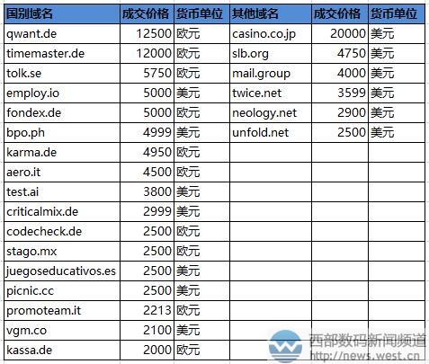 “益民寶”域名YMB.COM以24萬(wàn)元結(jié)拍!“好中國(guó)”登上Sedo榜西部數(shù)碼(west.cn)6月28日消息,最新一期的sedo交易榜出爐,本期上榜的域名共有78個(gè),其中賣價(jià)最貴的是三字母域名 YMB.com,成交價(jià)為35,000美元,約合人民幣24萬(wàn)元。