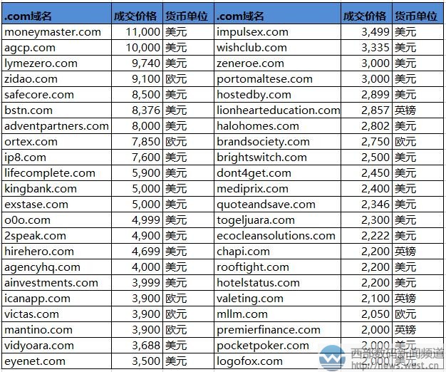 Sedo交易榜:意大利域名奪得冠軍!“比特幣”域名bitcoins.co拍出五位數(shù)!西部數(shù)碼(west.cn)7月6日消息,最新一期的sedo交易榜出爐,本期上榜的域名共有61個,其中賣價最貴的是意大利國別域名flix.it,成交價為22,000美元,約合人民幣15萬元。