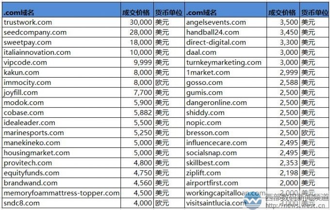 Sedo榜:“工作”類域名以20萬(wàn)元領(lǐng)銜!3個(gè)新頂級(jí)域名表現(xiàn)搶眼!西部數(shù)碼(west.cn)7月19日消息,最新一期的sedo交易榜出爐,本期上榜的域名共有65個(gè),其中賣價(jià)最貴的是英文域名trustwork.com,成交價(jià)為30,000美元,約合人民幣20萬(wàn)元。