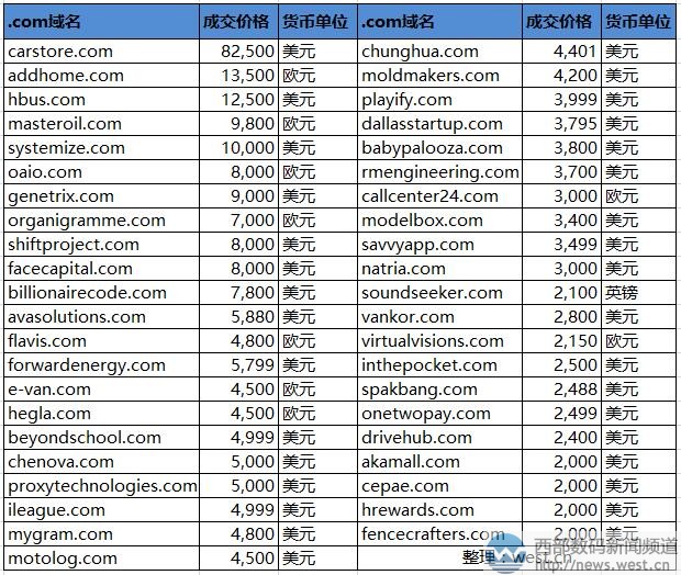 .com域名方面,本期共有五個(gè)域名超五位數(shù)成交。其中,成交價(jià)格最高的是英文組合域名carstore.com,價(jià)格為82,500美元,約合人民幣52萬(wàn)元。該域名主體由單詞“car”(汽車)和“store”(商店)組合而成,很適合搭建汽車電商,應(yīng)用價(jià)值不俗。目前對(duì)應(yīng)有臺(tái)灣汽車百貨(carstore.com.tw)。 排名第二的是以13,500歐元成交的域名addhome.com,約合人民幣10萬(wàn)元。含義上,該域名具有“加上家”的意思;應(yīng)用方面,除了對(duì)應(yīng)有蘇州誠(chéng)品生活展以外,還有歐洲搬家公司Add home,其官網(wǎng)域名為add-home.eu。 緊隨其后的是四字母域名hbus.com,成交價(jià)為12,500美元。該域名由字母“H”和“bus”(汽車)組成,除了對(duì)應(yīng)HBUS通訊技術(shù)、H-Bus 智能家居系統(tǒng)以外,也可以用于汽車類終端,畢竟“bus”一詞常見通用,用在汽車領(lǐng)域很有優(yōu)勢(shì)。 除此以外,masteroil.com和systemize.com分別以9,800歐元和10,000美元成交,前者有“大師油”之意;適合搭建食用油品牌;后者是“系統(tǒng)化”的意思,沒有特定的行業(yè)指向,適合多個(gè)領(lǐng)域建站使用。