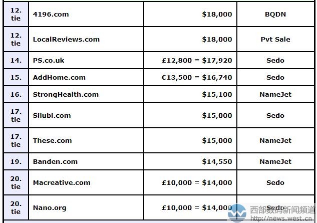 DN榜:三字母域名HPX.COM奪冠! “汽車商店”中六位成交2月8日消息,上周由于全球域名大會NamesCon在拉斯維加斯召開,DN榜未公布交易情況。本期的DN榜涵蓋了1月22日–2月4日期間成交價(jià)最高的域名,其中三聲母域名HPX.COM以130,000美元排在第一,約合人民幣81萬元。