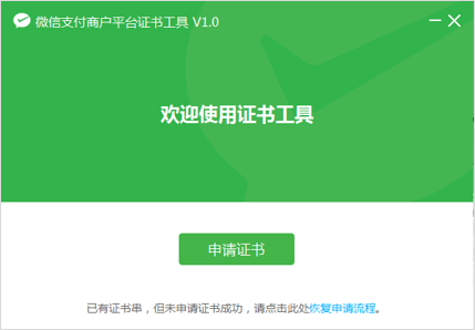 二、如何獲取API證書注意:獲取API證書需要商戶號(hào)的超級(jí)管理員才能操作 1、點(diǎn)擊API安全里的【申請(qǐng)證書】按鈕,并點(diǎn)擊下載去下載證書工具。 備注:也可直接訪問該鏈接 https://wx.gtimg.com/mch/files/WXCertUtil-1.0.zip 下載證書工具