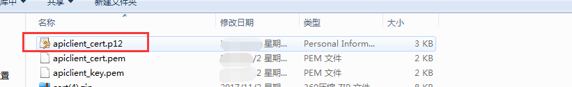 下載證書文件后,并解壓,后續(xù)需上傳“apiclient_cert.p12”如圖中所示資料到商城后臺(tái)