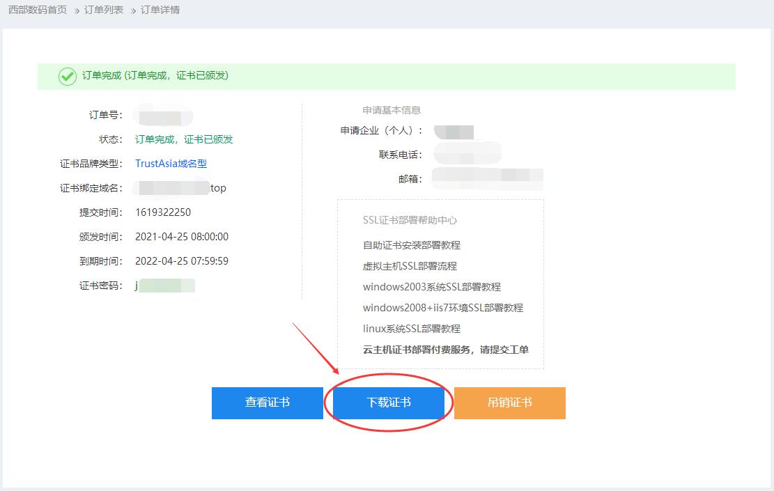 2.點(diǎn)擊“下載證書(shū)”。