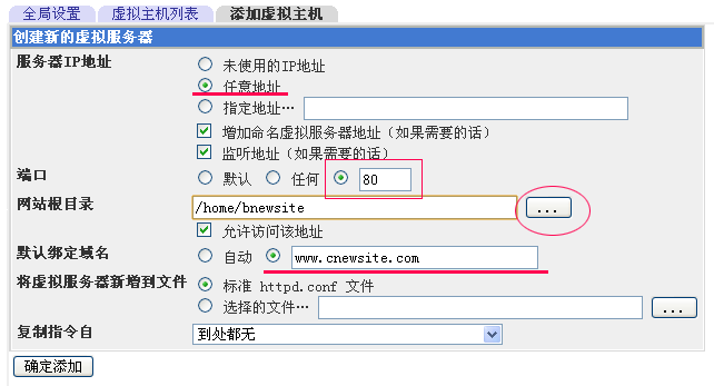 [原創(chuàng)]如何利用webmin在Linux主機(jī)中添加網(wǎng)站Linux系統(tǒng)因其高效穩(wěn)定而受到廣大用戶的推崇與青睞,然后其管理的復(fù)雜性也使很多用戶望而卻步,動(dòng)彈不得.為了降低 Linux系統(tǒng)的管理難度,更有效方便的使用該系統(tǒng),我司所有Linux主機(jī)或VPS系統(tǒng)均預(yù)裝了網(wǎng)頁(yè)管理工具webmin. 1、登錄系統(tǒng) ![]() 2、添加新網(wǎng)站 當(dāng)您準(zhǔn)備利用該Linux服務(wù)器發(fā)布某個(gè)網(wǎng)站時(shí),您首先應(yīng)該將網(wǎng)站的域名解析到服務(wù)器,并在服務(wù)器上添加相應(yīng)的配置才可使用.完成網(wǎng)站發(fā)布的程序叫Apache,所以我們添加新網(wǎng)站的過程也就是Apache服務(wù)的管理過程. 當(dāng)然,一個(gè)完整的網(wǎng)站通常包括一個(gè)上傳用的FTP,一個(gè)網(wǎng)站以及一個(gè)MySQL數(shù)據(jù)庫(kù).此三者需要分別添加,具體詳情如下: 2.1 添加FTP帳號(hào) Linux系統(tǒng)中FTP帳號(hào)通常也就是系統(tǒng)帳號(hào),利用webmin添加的過程如下: 登錄webmin后,點(diǎn)擊"系統(tǒng)"-"用戶與群組"(如下圖) ![]() 再點(diǎn)擊"創(chuàng)建新用戶"(如下圖) ![]() 在"創(chuàng)建新用戶"表單中,輸入"用戶名",口令那兒選擇"明文口令"并輸入密碼即可,所有其它選項(xiàng)全部默認(rèn),并點(diǎn)新建即可.該用戶名與密碼即是FTP上傳用戶名與密碼.(如下圖) ![]() 2.2 添加網(wǎng)站 Linux下的網(wǎng)站服務(wù)是由Apache軟件來提供的,所以我們需要在webmin中點(diǎn)擊"服務(wù)器"-"Apache 服務(wù)器"(如下圖) ![]() 點(diǎn)擊后系統(tǒng)會(huì)列出現(xiàn)有的所有虛擬主機(jī),此時(shí)我們需要點(diǎn)擊"添加虛擬主機(jī)"(如下圖) ![]() "服務(wù)器IP地址"選擇"任意地址" "端口"指定為"80" "網(wǎng)站根目錄"設(shè)置為步驟2.1所添加的系統(tǒng)帳號(hào)的主目錄,默認(rèn)情況下路徑是/home/FTP用戶名,可點(diǎn)擊后邊的"..."按鈕瀏覽選擇 "默認(rèn)綁定域名"填寫為您的主域名,若有多個(gè)域名,則剩下的域名需要添加好虛擬主機(jī)后再行設(shè)置. 最后點(diǎn)擊"確定添加"即可(如下圖) ![]() 2.3 增加新的綁定域名 添加虛擬主機(jī)默認(rèn)只能指定一個(gè)域名,若您一個(gè)網(wǎng)站有多個(gè)域名需要綁定時(shí),需添加好網(wǎng)站后按以下步驟操作. 首先重新進(jìn)入"Apache 服務(wù)器"管理,選中剛才添加的虛擬主機(jī),點(diǎn)擊剛才添加的虛擬主機(jī)前邊的地球圖標(biāo)(如下圖) ![]() 再點(diǎn)擊"網(wǎng)絡(luò)和地址"(如下圖) ![]() 在"替代的虛擬服務(wù)器名"中將剩下的域名填寫進(jìn)去并點(diǎn)保存即可,每行一個(gè).(如下圖) ![]() ****特別注意**** 不管是添加虛擬主機(jī)還是新增綁定域名,保存后并不會(huì)立即生效,必須點(diǎn)擊右上方的"保存修改"后方可生效(如下圖) ![]() 3、新加MySql數(shù)據(jù)庫(kù) 一般PHP網(wǎng)站都會(huì)使用一到兩個(gè)MySQL數(shù)據(jù)庫(kù),一個(gè)完整的可使用的數(shù)據(jù)庫(kù)實(shí)際上由三部分組成:①數(shù)據(jù)庫(kù)本身,②登錄MySQL系統(tǒng)的用戶,③用戶與數(shù)據(jù)庫(kù)之間的關(guān)系。 所以若要使用Webmin添加一個(gè)MySql數(shù)據(jù)庫(kù),需要經(jīng)過三個(gè)步驟. 3.1添加數(shù)據(jù)庫(kù) 點(diǎn)擊Webmin的"服務(wù)器"-"MySQL數(shù)據(jù)庫(kù)服務(wù)器"(如下圖) ![]() 再點(diǎn)擊"創(chuàng)建新的數(shù)據(jù)庫(kù)"(如下圖) ![]() 在"創(chuàng)建新的數(shù)據(jù)庫(kù)"表單中,僅輸入"數(shù)據(jù)庫(kù)名"即可,不用修改其它任何設(shè)置并點(diǎn)"新建"即可,一般推薦數(shù)據(jù)庫(kù)名和您的上傳用戶名相同,方便識(shí)別(如下圖) ![]() 3.2添加數(shù)據(jù)庫(kù)登錄用戶 在"Mysql數(shù)據(jù)庫(kù)服務(wù)器"中點(diǎn)擊"用戶權(quán)限"(如下圖) ![]() 再點(diǎn)擊"創(chuàng)建新用戶"(如下圖) ![]() 在"創(chuàng)建新用戶"表單中 "用戶名"填寫登錄名,一般推薦與數(shù)據(jù)庫(kù)名相同 "密碼"設(shè)置為數(shù)據(jù)庫(kù)登錄密碼 "主機(jī)"默認(rèn)"任何"即可 "權(quán)限"不要選擇,默認(rèn)即可 并點(diǎn)擊"新建"(如下圖) ![]() 3.3建立添加的用戶與數(shù)據(jù)庫(kù)之間的關(guān)系 在"Mysql數(shù)據(jù)庫(kù)服務(wù)器"中點(diǎn)擊"數(shù)據(jù)庫(kù)權(quán)限"(如下圖) ![]() 再點(diǎn)擊"創(chuàng)建新的數(shù)據(jù)庫(kù)權(quán)限"(如下圖) ![]() 在"創(chuàng)建數(shù)據(jù)庫(kù)權(quán)限"表單中 "數(shù)據(jù)庫(kù)"選擇(Selected)剛才新建的數(shù)據(jù)庫(kù)名 "用戶名"指定為剛才新建的MySQL用戶 "主機(jī)"默認(rèn)選擇"任何" "權(quán)限"選擇好除"授予特權(quán)"外的所有權(quán)限 并點(diǎn)擊"新建"即可(如下圖) ![]() 2010年7月5日起開通的部分linux VPS , 我司已為您建了一個(gè)默認(rèn)的虛擬主機(jī): ftp賬號(hào)vhost001 上傳密碼mypassword001 上傳后,將您的域名解析到IP,域名提交白名單,生效后就可以訪問。 經(jīng)過以上步驟,一個(gè)完整的Linux下的網(wǎng)站空間即建立成功,當(dāng)然部分PHP程序要求空間中的一些目錄必須具備寫權(quán)限,此時(shí)使用Webmin中的"其它"-"文件管理器"功能中的"信息"功能將該目錄的組及其它用戶的寫入權(quán)限選中即可.(文件管理器是一個(gè)JAVA小程序,使用過程是先選中該