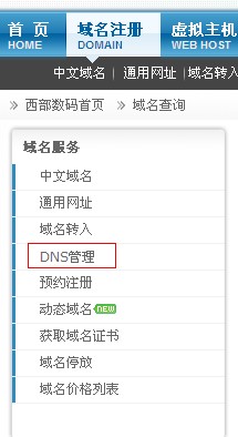以下講解下設(shè)置方法: 1、首先,用您自己的會(huì)員賬號(hào)登陸我司網(wǎng)站,點(diǎn)擊域名注冊(cè),然后點(diǎn)擊左側(cè)的“DNS管理”。