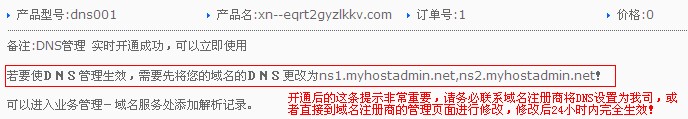 5、開(kāi)通后系統(tǒng)會(huì)提示您將域名的DNS服務(wù)器地址修改為我司,修改后會(huì)在24小時(shí)內(nèi)完全生效。