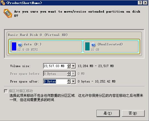 用鼠標(biāo)將右邊的10G全部包含進(jìn)去,然后點(diǎn) 是 ,這樣擴(kuò)展分區(qū)增大了