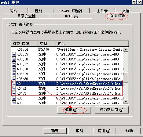 找到HTTP錯(cuò)誤,下邊對(duì)應(yīng)的404,點(diǎn)擊“編輯”