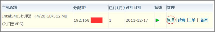 點(diǎn)擊“管理”進(jìn)入獨(dú)立IP主機(jī)的管理面板,如圖: