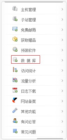 從虛擬主機遷移數(shù)據(jù)至VPS/云主機/獨立服務(wù)器的方法備份流程: 以下遷移流程需要您有一定的網(wǎng)站管理基礎(chǔ),若對以下轉(zhuǎn)移流程不熟悉,可以提交維護工單,由我司收費為您處理。 一、備份 1、備份mysql數(shù)據(jù)庫 登錄我司網(wǎng)站,點擊“業(yè)務(wù)管理”——“虛擬主機管理”——“管理”,進入虛擬主機管理面板,點擊左側(cè)的數(shù)據(jù)庫,如圖: