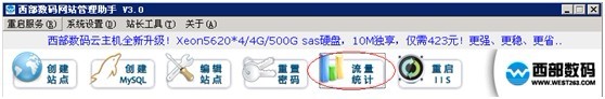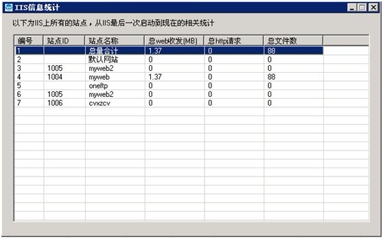 如果要查看IIS里每個站點(diǎn)的流量情況,可以打開網(wǎng)站管理助手,點(diǎn)擊“流量統(tǒng)計(jì)”,如圖: