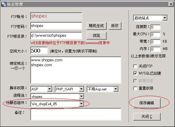 3、如果您的站點(diǎn)開始設(shè)置了偽靜態(tài),請(qǐng)點(diǎn)擊“編輯站點(diǎn)”,再點(diǎn)保存編輯即可。