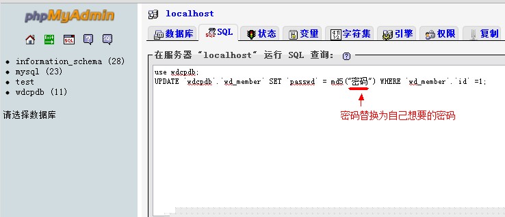 [原創(chuàng)]wdcp系統(tǒng)無法登錄忘記密碼我司有兩個版本,早些時候是1.1的版本,現(xiàn)在新安裝的都是2.x的版本,重置方法如下:登錄phpmyadmin在線管理mysql,在訪問地址后面加phpmyadmin就可以進行管理,賬號root,密碼是初始密碼(修改過root密碼請用修改后的密碼登錄),然后執(zhí)行以下sql語句,xxx請修改為自己需要的登錄密碼。use wdcpdb; |