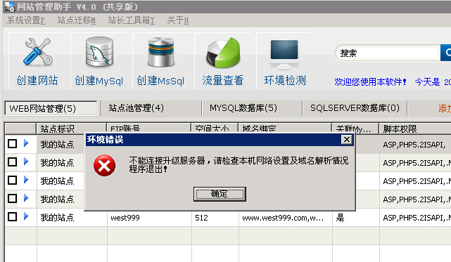 網(wǎng)站管理助手打開報錯檢查一.打開助手軟件出現(xiàn)以下錯誤可能造成的原因有: 1.服務(wù)器時間差距太大,尤其注意服務(wù)器時間中的日期 4.檢查服務(wù)器磁盤是否已滿,請清理或升級擴容