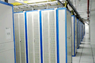 UPS系統(tǒng),一期共安裝四臺索科曼(800KVA)系列UPS主機,單臺功率為200KVA,總有功率為640KVA。二用二備并機的情況下, 托管滿3500臺服務(wù)器,兩路市電同時掉電,油機啟動前電池組能工作一小時。二期總功率將更大。單臺功率為800KVA。